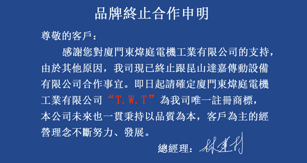 因消費者購買本公司電機時,常買到仿冒品,造成許多消費者、客戶的不便,T.W.T東煒庭電機在此提供幾項簡易辨認方法,辨認由T.W.T東煒庭電機所出產的電機方法。